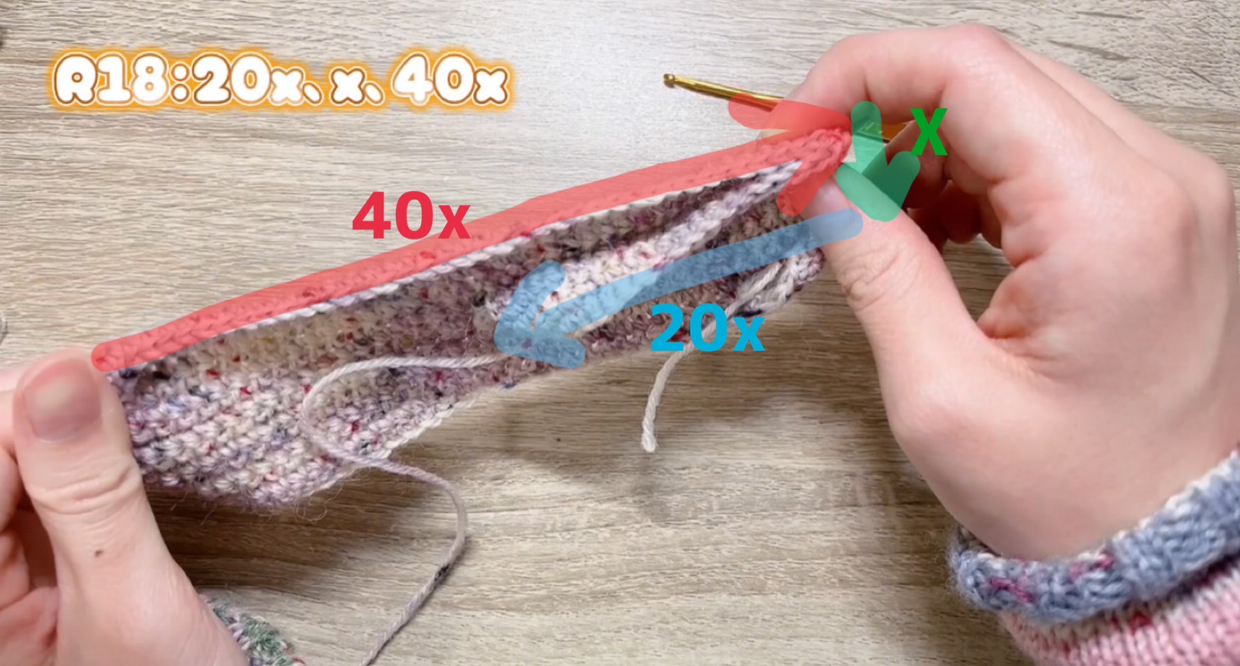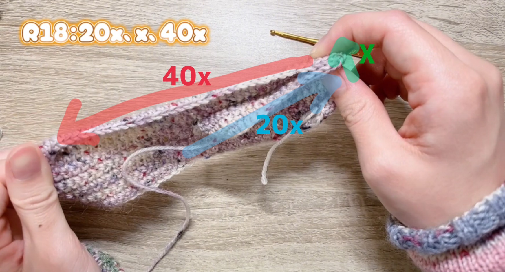 ・👇20x、x、40x これを1段分として編みます