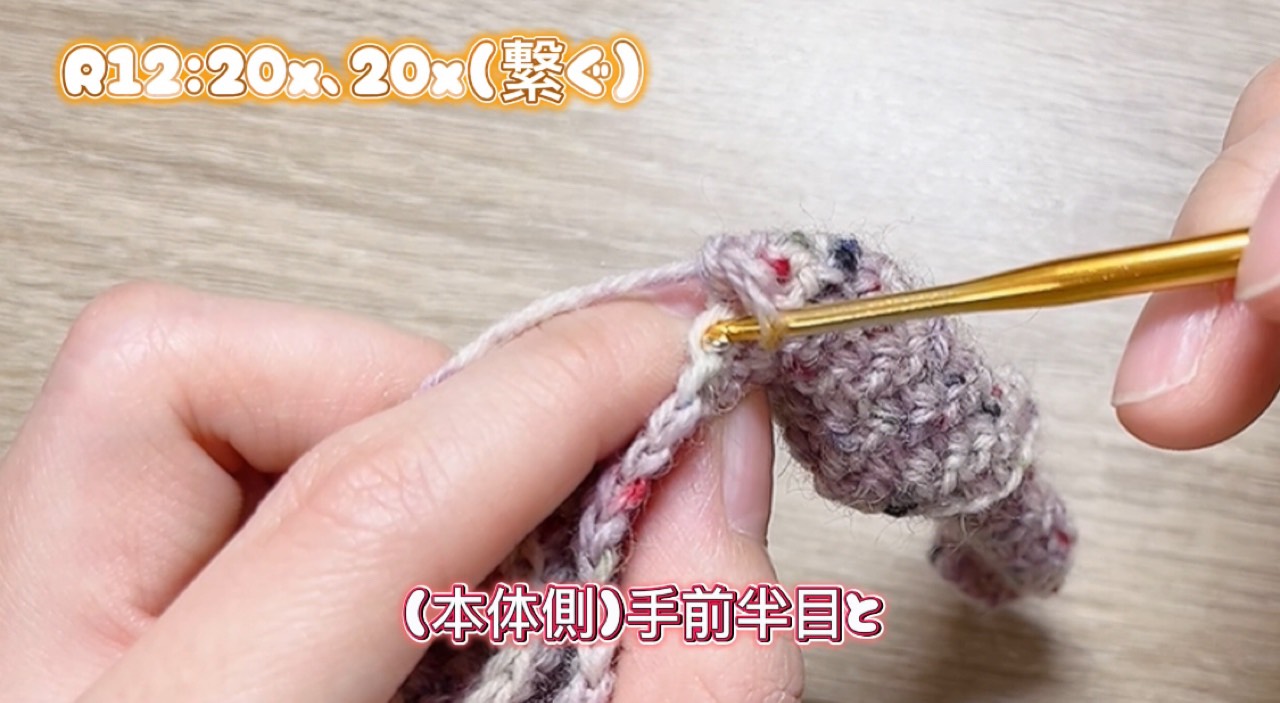 ・細編みの20目めはーを拾って編みます