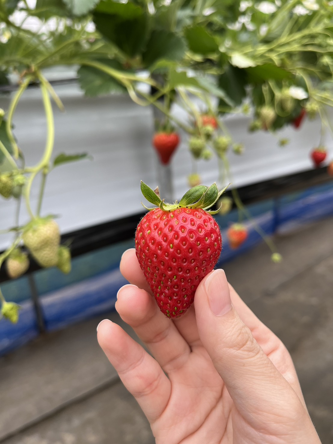 直売所に入った時、すでにいちごの香りがしていたんですが、ビニールハウスの中はもっと、いちごのいい香りが漂っていました💕